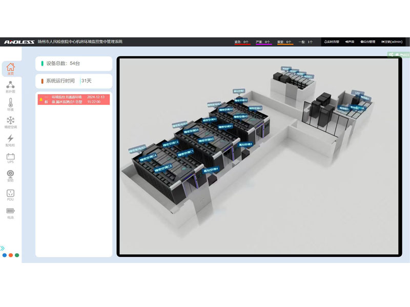 近期有幸為江蘇省某市檢察院提供三套安德力士品牌微模塊機房設備,涉及系統(tǒng)有:UPS不間斷電源、精密空調、機柜、配電、動力環(huán)境監(jiān)控等系統(tǒng);涉及主要設備有:UPS主機(30KVA、40KVA、300KVA)、鉛酸蓄電池(100AH64節(jié)、200AH128節(jié)、250AH320節(jié))、精密空調(行級25KW12臺、基站12.5KW4臺)、機柜51套,現(xiàn)已全部安裝調試完成。
